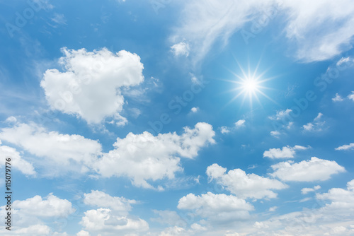 Canvas Prints blue sky with clouds and sun reflection. looking up view