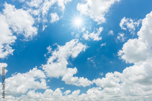 Canvas Prints blue sky with clouds and sun reflection. looking up view