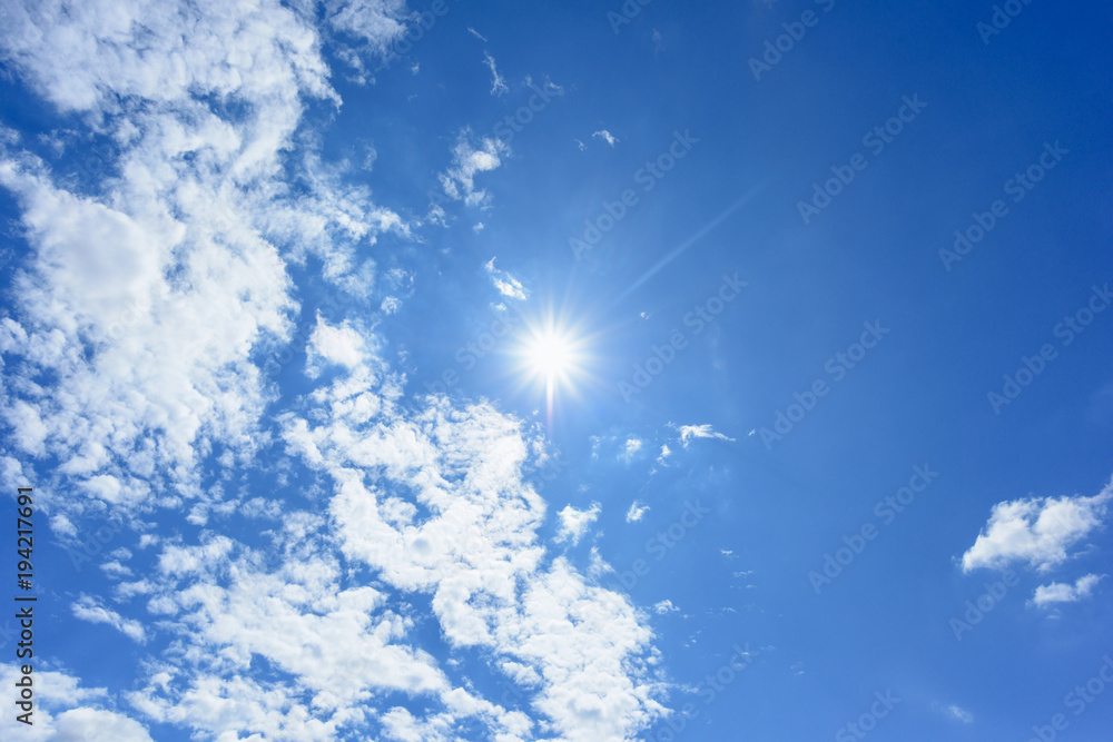 Canvas Prints blue sky with clouds and sun reflection. looking up view.