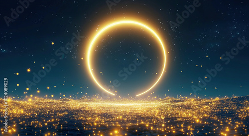 The watermark will not be included on Canvas Print.: Blue technology particle ball background