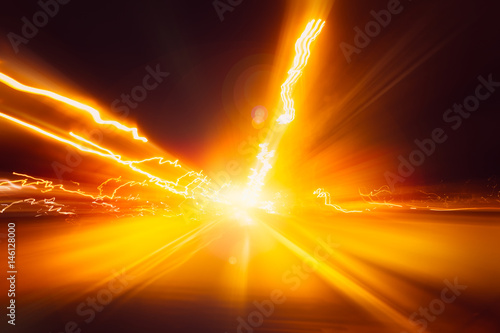 Canvas Prints blur hi-power lightning acceleration to high speed on night superhighway road fast moving motion dri