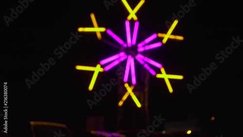 The watermark will not be included on Canvas Print.: Blurred abstract background lights at night in the amusement park