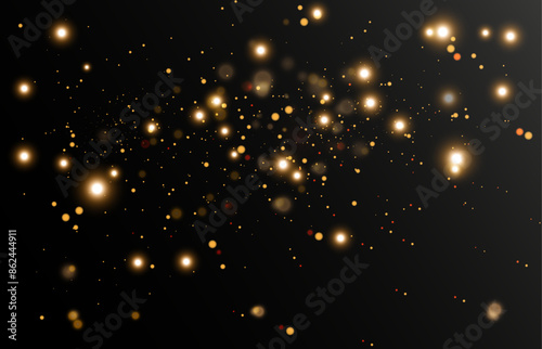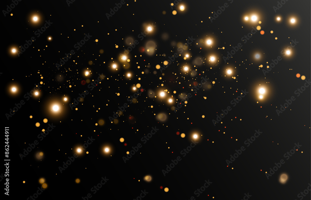 The watermark will not be included on Canvas Print.: Bokeh glow background of sparkling dust, gold dust light, background with bokeh light effect, yellow