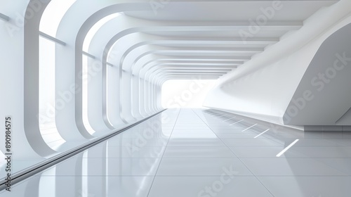 The watermark will not be included on Canvas Print.: Bright empty futuristic corridor going up to the light