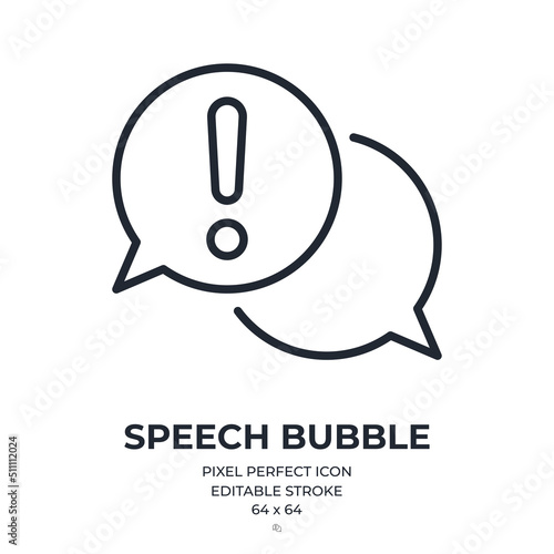 Canvas Print : Bubble speech with exclamation mark editable stroke outline icon isolated on white background flat v