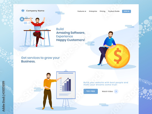 The watermark will not be included on Canvas Print.: Building amazing software with business growth and success concept based web banner design with busi