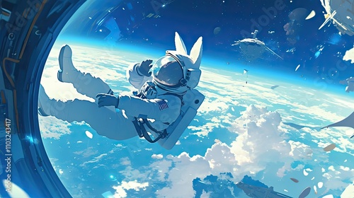 Canvas Print : Bunny astronaut floating above earthly clouds