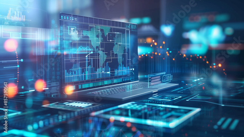Canvas Prints business financial data management system virtual display over a laptop, digital software technology - Canvas Prints Canvas Prints business financial data management system virtual display over a laptop, digital software technology - Canvas Prints