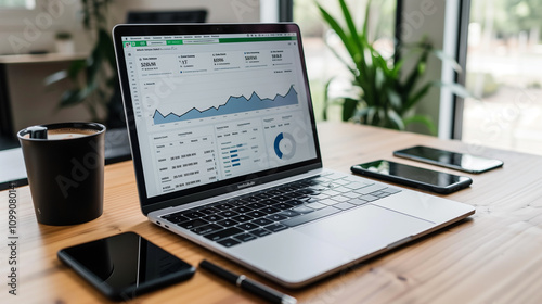 Canvas Prints business schedule calendar display on screen of a laptop on the table in modern office