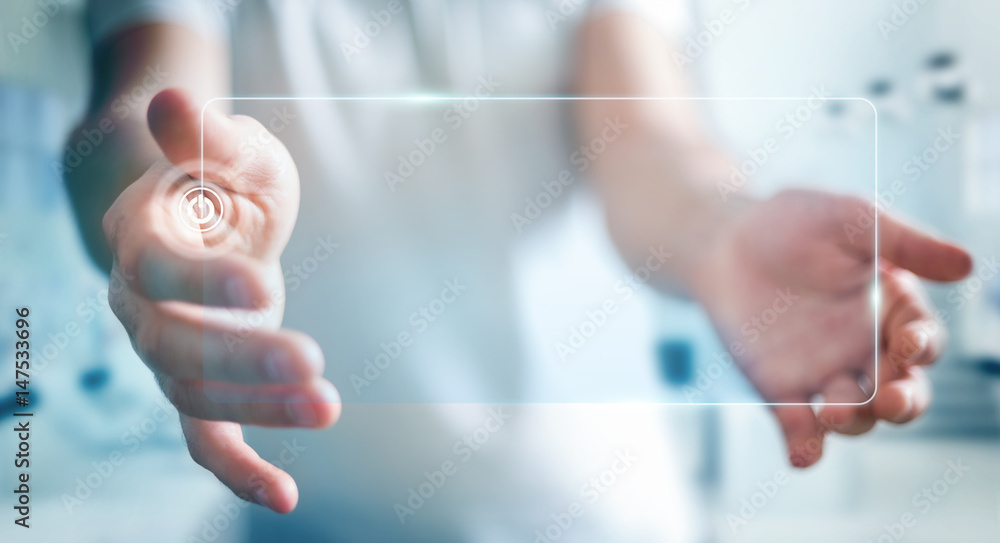 The watermark will not be included on Canvas Print.: Businessman surfing on internet with digital tactile interface 3d rendering
