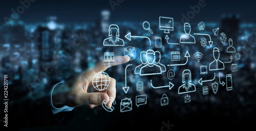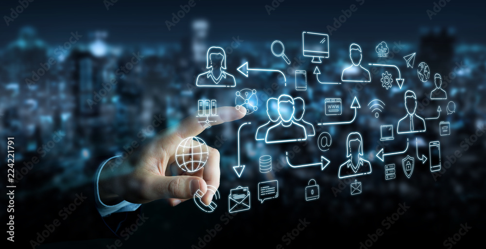 Canvas Prints businessman using thin line social network icons interface - Canvas Prints Canvas Prints businessman using thin line social network icons interface - Canvas Prints