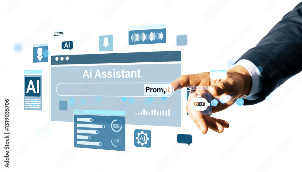 Canvas Print : Businessperson interacting with ai assistant interface on white background -