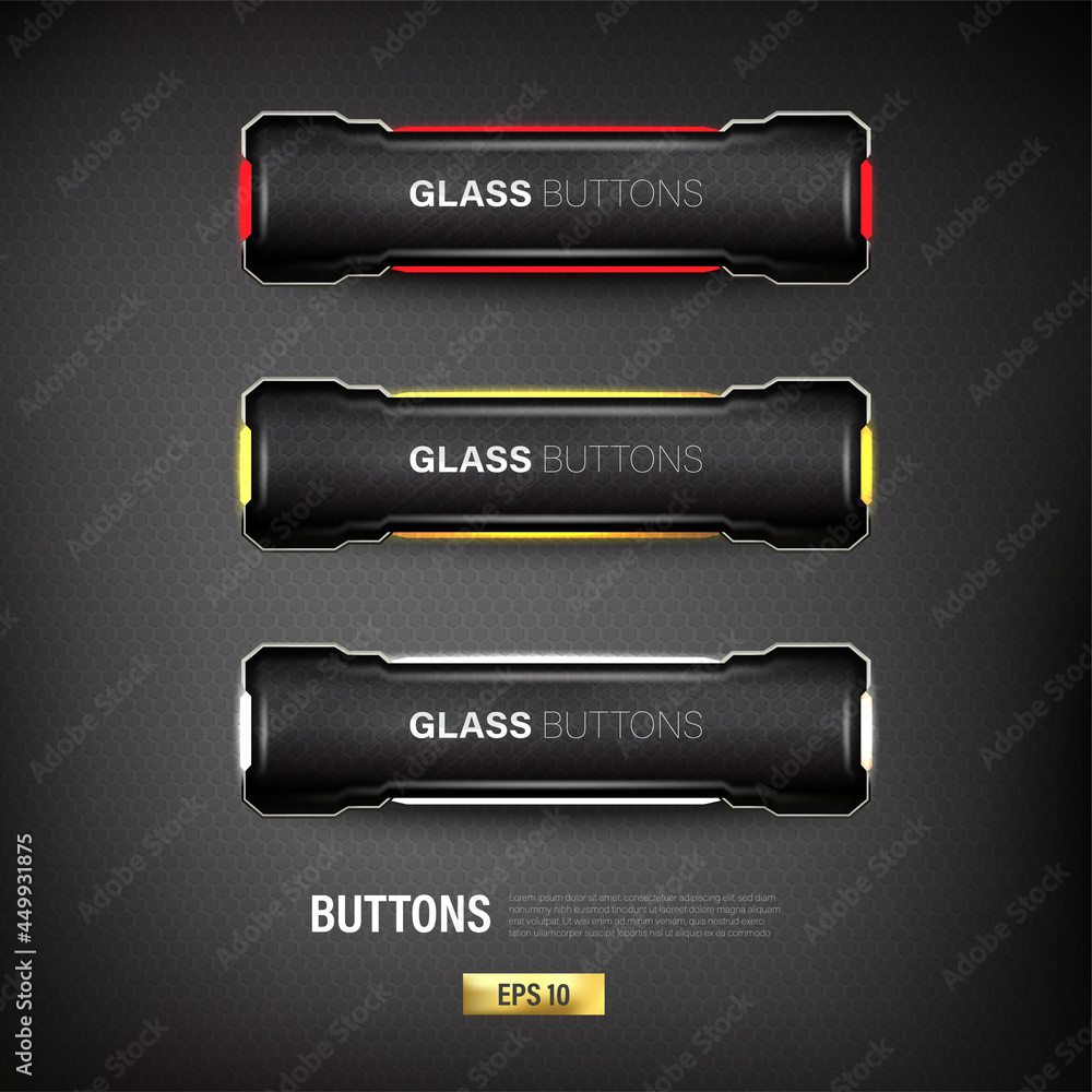 The watermark will not be included on Canvas Print.: Buttons set web steel on background color black 7edit