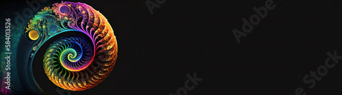 Canvas Print : Card with colorful spiral, fantasy color swirls on dark background, copy space with surreal fractal,