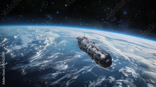 Canvas Prints cargo spaceship orbiting earth in dark space with a stunning view of the blue planet below