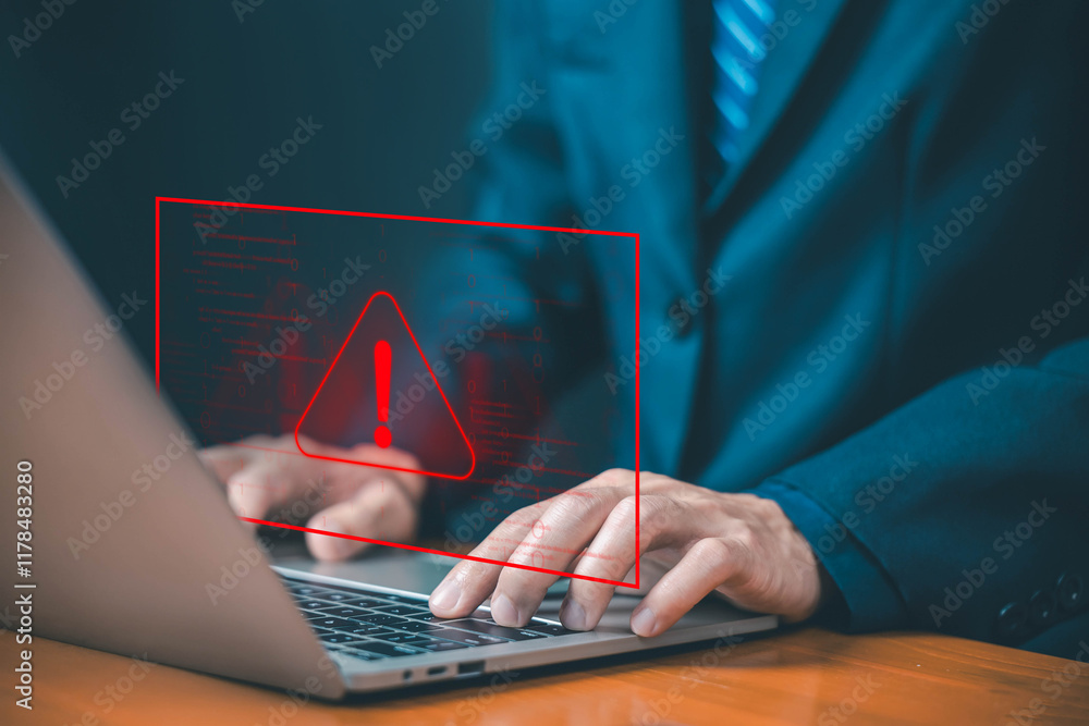 The watermark will not be included on Canvas Print.: Caution of spam in website digital technology, error 404 alerts on a laptop - concept of warning symb