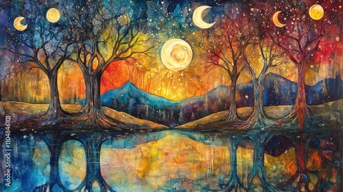 The watermark will not be included on Canvas Print.: Celestial reflection: a dreamlike nightscape