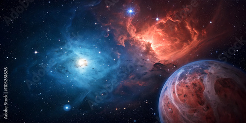 Canvas Print : Celestial symphony, the enchanting beauty of colorful nebulae and planets in deep space in the vast