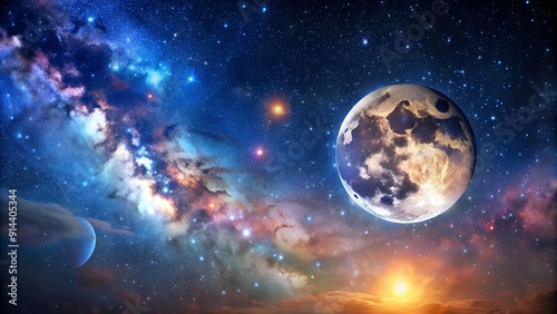 The watermark will not be included on Canvas Print.: Celestial tapestry: a symphony of stars and moonlight generative ai
