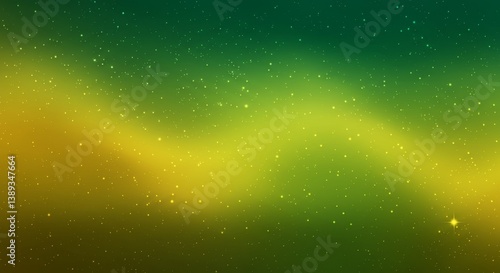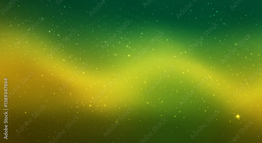 The watermark will not be included on Canvas Print.: Celestial wave abstract background - abstract of a green and gold celestial wave with sparkling star