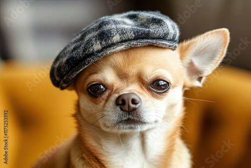 Canvas Print : Chihuahua wearing a tiny hat with a proud but tiny grumpy face, symbolizing big personality