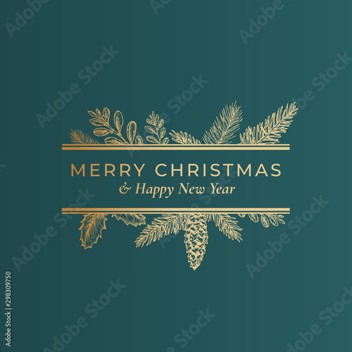 The watermark will not be included on Canvas Print.: Christmas abstract botanical label with rectangle frame banner and modern typography - classy green a