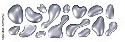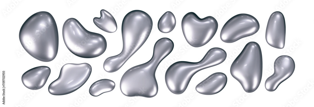 Canvas Print : Chrome liquid 3d shapes in y2k style isolated - render of 3d metal silver element, melt fluid form in
