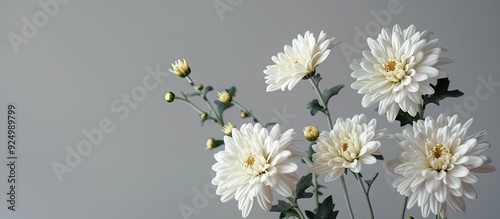 The watermark will not be included on Canvas Print.: Chrysanthemum flowers positioned tastefully against a grey backdrop ideal for adding text or graphic