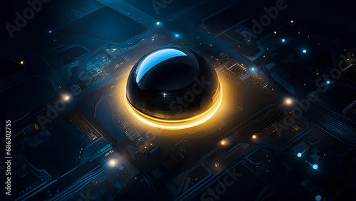 The watermark will not be included on Canvas Print.: Circuit board with a glowing ball in the center -