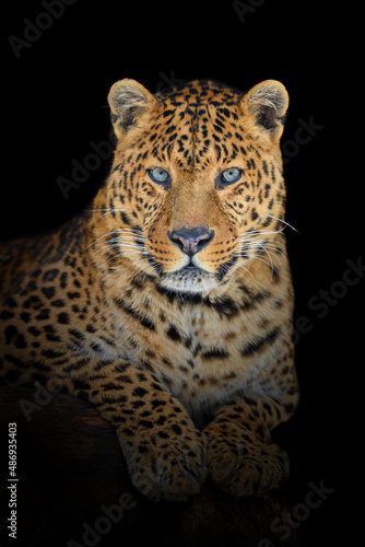 The watermark will not be included on Canvas Print.: Close up big leopard isolated on black background