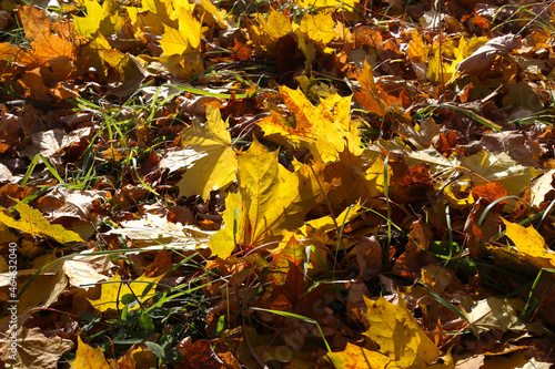 The watermark will not be included on Canvas Print.: Close-up of fallen leaf of maple tree glowing in sunlight