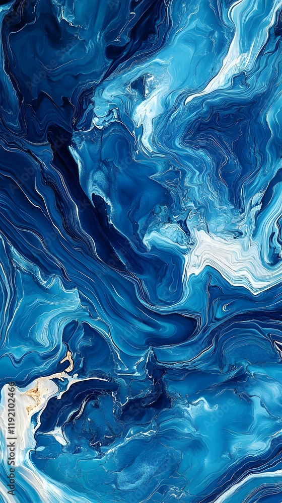 The watermark will not be included on Canvas Print.: Close-up of ocean waves creating dynamic patterns of light and shadow on a vibrant blue water surfac