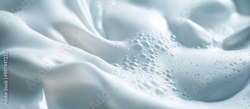 The watermark will not be included on Canvas Print.: Close-up of smooth white fabric with water droplets and bubbles on a textured surface copy space