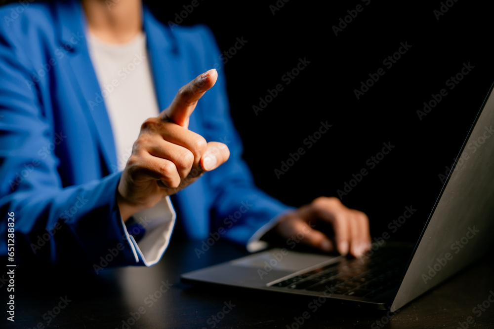 Canvas Print : Close-up portrait typing keyboard on laptop computer - working online on white table at office - faceb