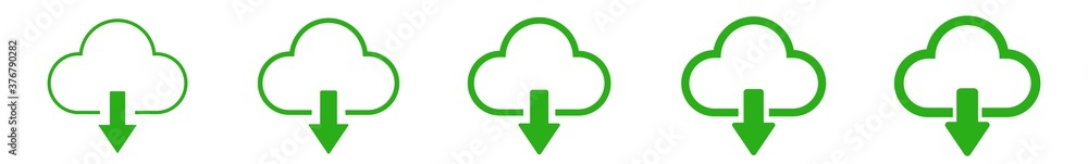 The watermark will not be included on Canvas Print.: Cloud download icon green line | clouds arrow down illustration | computing storage symbol | server