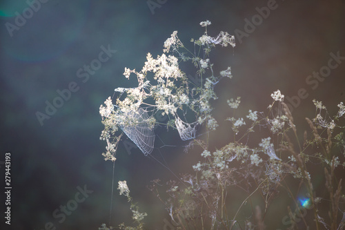 Canvas Prints cobwebs on the grass and branches of trees. the web grid is illuminated by the morning sunlight - Canvas Prints Canvas Prints cobwebs on the grass and branches of trees. the web grid is illuminated by the morning sunlight - Canvas Prints