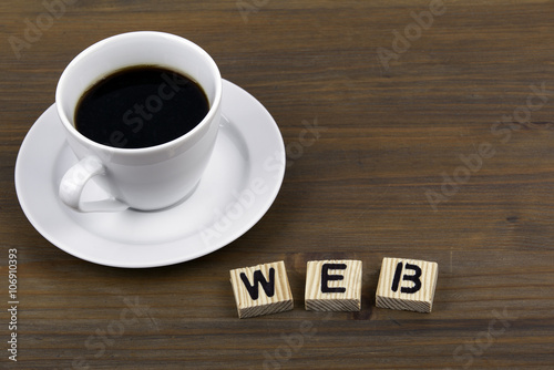 The watermark will not be included on Canvas Print.: Coffee cup on a wooden table and text - web
