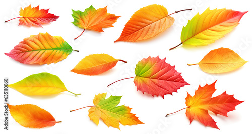 The watermark will not be included on Canvas Print.: Collection of multicolored leaves of autumn trees and shrubs isolated on white background