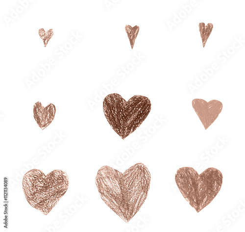 The watermark will not be included on Canvas Print.: Collection pencil drawn in mocha mousse color heart isolated on white background