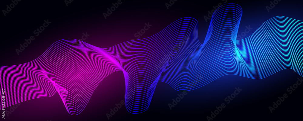 The watermark will not be included on Canvas Print.: Colored dynamic waves on a dark background - geometric abstract background with lines - vector illustr