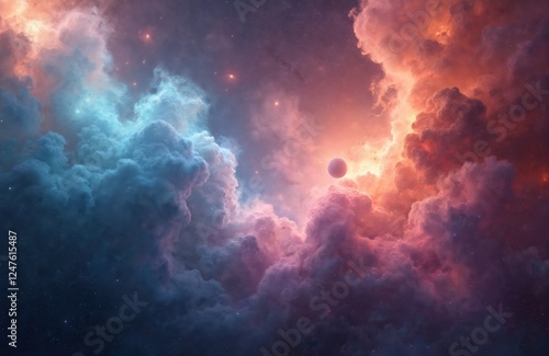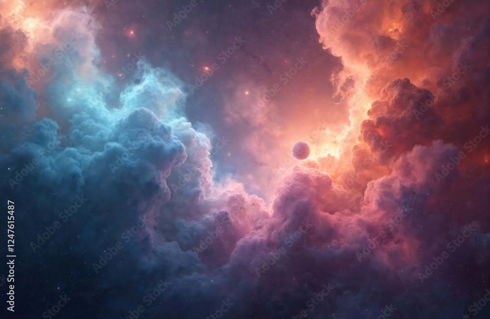 The watermark will not be included on Canvas Print.: Colorful abstract space scene shows gigantic clouds of glowing interstellar nebulae - different color