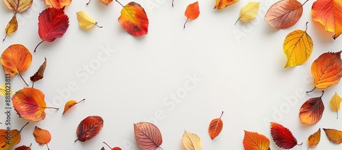 The watermark will not be included on Canvas Print.: Colorful autumn foliage on white background with copy space image