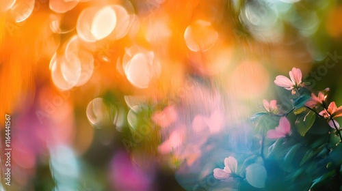 The watermark will not be included on Canvas Print.: Colorful bokeh abstract background with vibrant floral details creating a dreamy and artistic atmosp