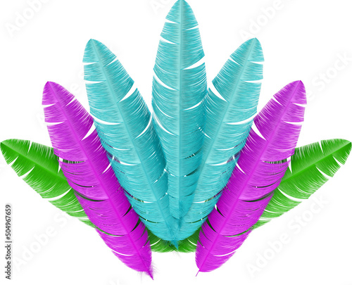 The watermark will not be included on Canvas Print.: Colorful carnival feathers in 3d render realistic