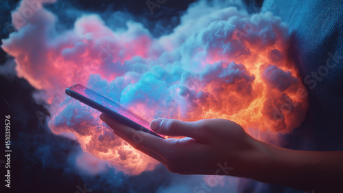 Canvas Prints colorful cloud technology concept with mobile device in hand symbolizing digital connectivity - Canvas Prints Canvas Prints colorful cloud technology concept with mobile device in hand symbolizing digital connectivity - Canvas Prints