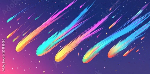 Canvas Print : Colorful comets streak across a starry gradient space background