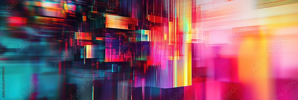 The watermark will not be included on Canvas Print.: Colorful geometric banner with glitch effect - bright background with blurred - vibrant abstract compo