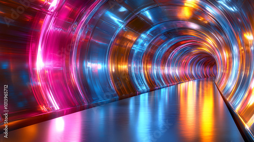 The watermark will not be included on Canvas Print.: Colorful illuminated tunnel with vibrant lighting in abstract design