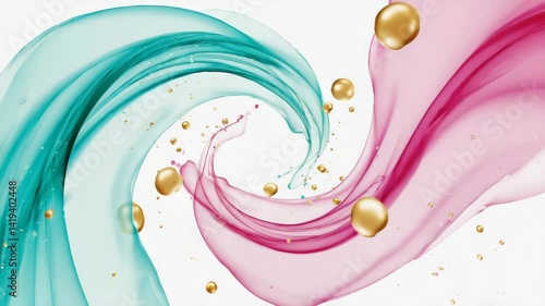 The watermark will not be included on Canvas Print.: Colorful liquid swirls with golden orbs create mesmerizing patterns