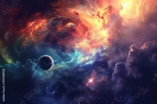 Canvas Print : Colorful nebula and glowing planet in deep space